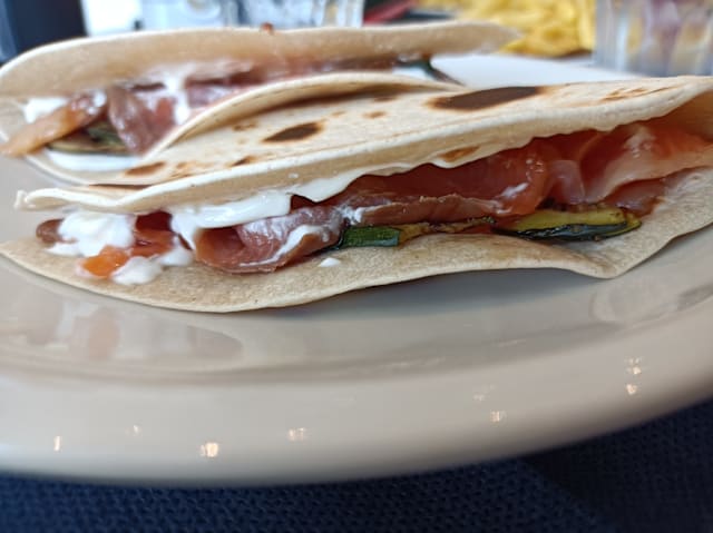 Prosciutto crudo, salmone af., philadelphia, pomodori e salsa rosa