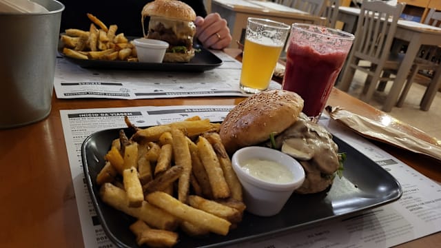 10/10The burgers and fries were excellent and exciting. There are great veggie options too. There's a long list of imported craft beers as well as local ones. Our waiter was very friendly and efficient. We will be back.