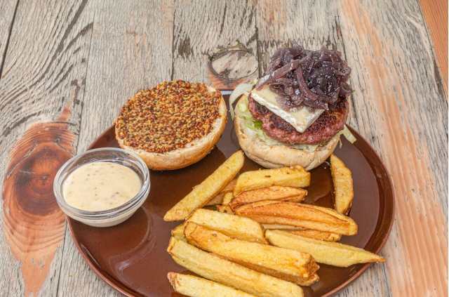 - Queijo brie cebola roxa caramelizad c/ vinho do porto, mostarda antiga c/grão alface iceberg