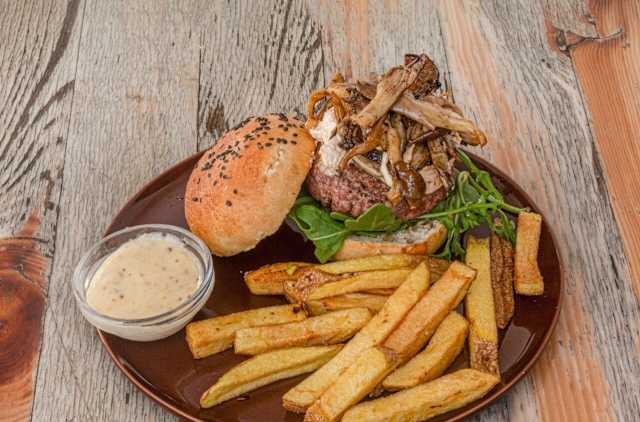 - Queijo creme açoreano com piri-piri e raspas de limão cogumelos pleurotus salteados e rúcula