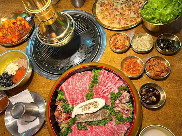 - Bulgogi, carne tradicional de yan bian, barriga de porco temperada, barriga de boi temperada, camarão picante, lulas, frango marinado, carne de cabrito, sabor original de porco preto ibérico