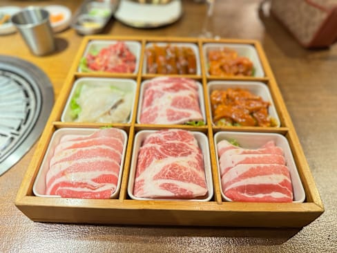10/10The staff were incredibly helpful. There was plenty of food - we chose the wagu steak platter with mushrooms as an added vegetable. We were supplied with as much sauce as we needed and extra lettuce when we ran out. This place is a must visit if you like table barbecues. Will definitely go again!!!
