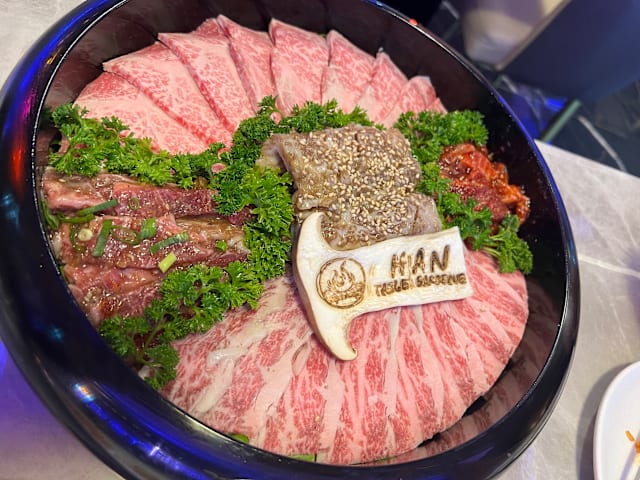 10/10I went there with a friend and I have to tell you this place was very pleasant. The environment is perfect for dinning with a group of friends but also good for a date. Despite being in the center of the city it was not jammed pack with people nor was it noisy. The food was super tasty but the service was even better. We told the staff it's our first time cooking meat and not only were they nice enough to teach us our server Sandy was nice enough to actually cook for us. All in all was a perfect dinning experience.