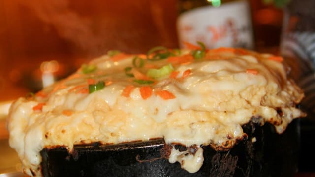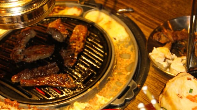Bulgogi, carne tradicional de yan bian, barriga de porco temperada, barriga de boi temperada, camarão picante, lulas. Frango marinado, carne de cabrito. Sabor original de porco preto ibérico