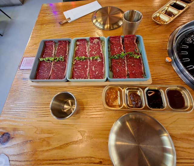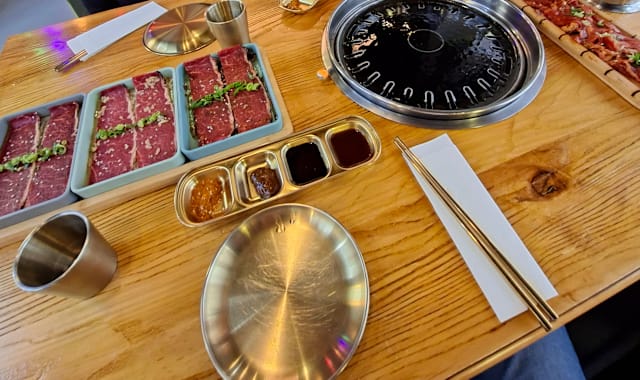 If you plan to eat at Han Tong - Korean BBQ, the average price should be around €16. The average price is calculated based on appetizer/entrée or entrée/dessert, excluding drinks. Prices have been provided by the restaurant.