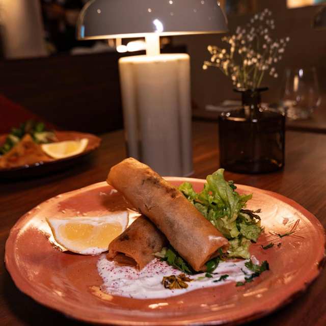 - Bricks végétarien/bœuf/ poulet. Servis avec une crème citron-menthe