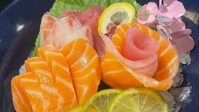 Carpaccio misto di salmone,orata, tonno accompagnato con salsa Ponzu fatto in casa.