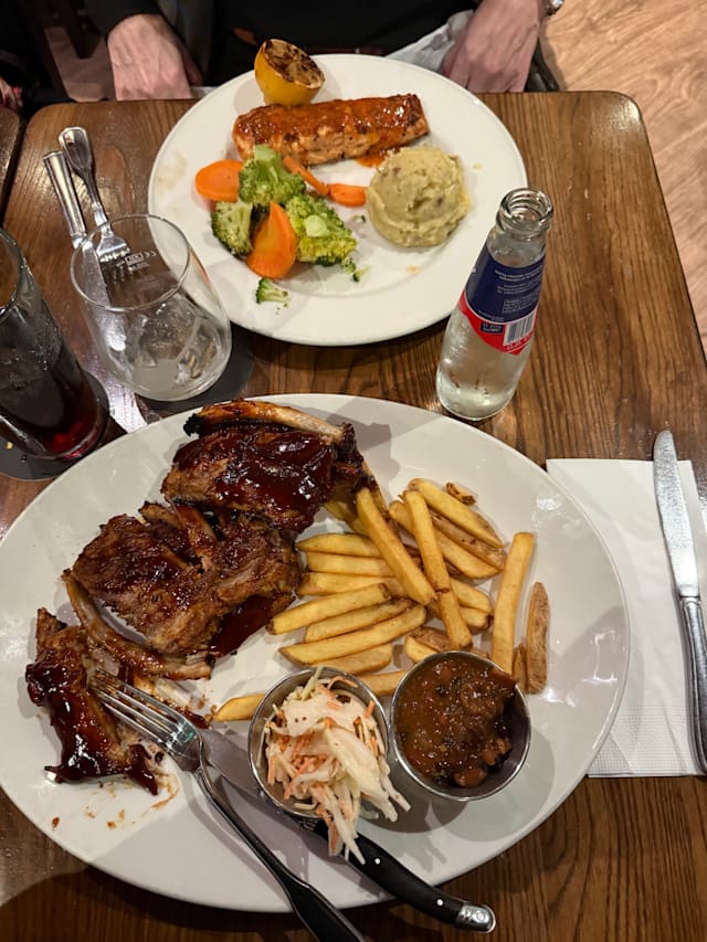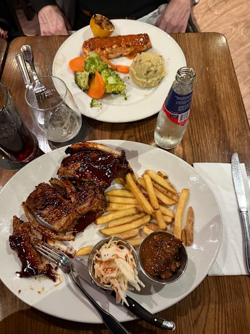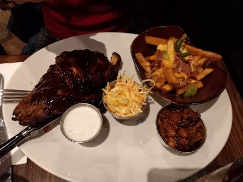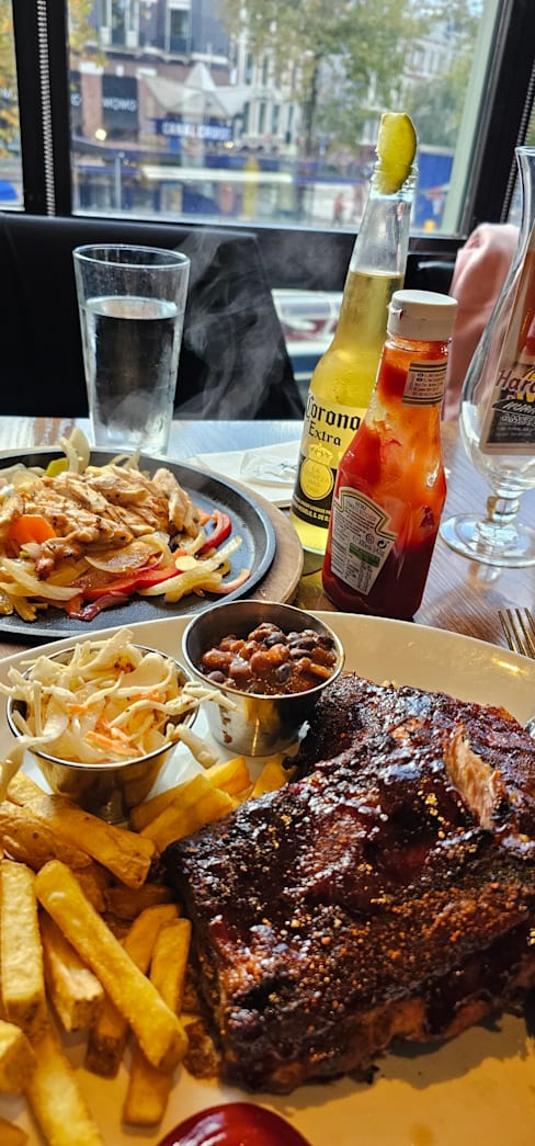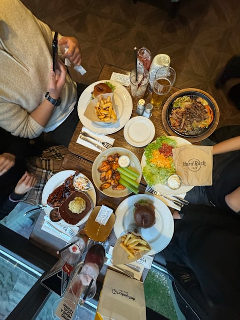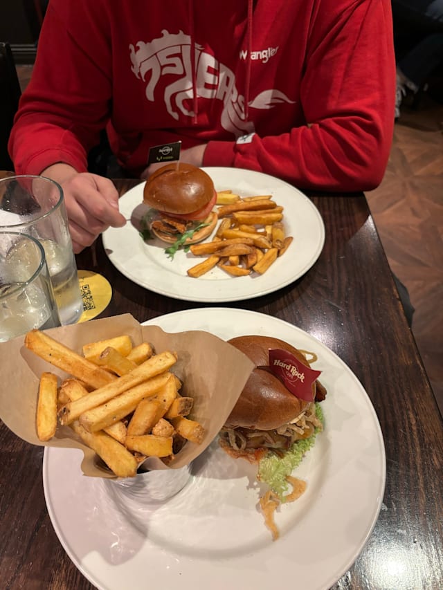 5.5/10There was a server who really had a sweatty smell around him. When he passed by it wasnt that pleasent when you eat. Also the food and cocktails where really mediocre, not what Im used to when Im eating at hard rock cafe. Our first server wasnt that interested in us nor his job so it really didn't called for us to complain about our drinks or food. Luckily at half past 5 the shifts where changed and a lovely young ladies came to serve us and recommended the coup as dessert. The dessert was really lovely. Would I come again if I'm in Amsterdam for an concert? No I probably will go 2 minutes further to wagamama.