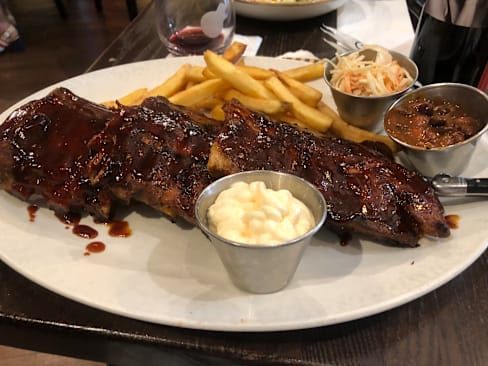 10/10Super service and amazing food. We had a bottle Of wine called sospechoso and it was very good quality. The waiter was super Patient and friendly. The food was amazing. I went for the ribs as they are famous here and I was not dissapointed. Huge ribs with super chips and yummie sides. Recommended to come here even if it’s for the experience