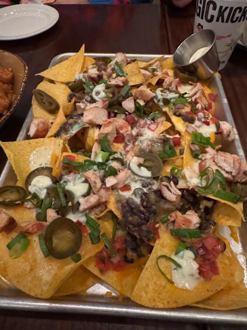 6/10Our nacho starter went wrong table then to us after the other party had eaten some. Long wait for mains - 3 parties arriving after us received their order before us. When ours came the plate was very hot and bun/pitta dry suggesting it had been under hot lamps for a while. The menu seems to be less than we remember. Pity that marketing with Messi seems to be a way of trying to collect clientèle.