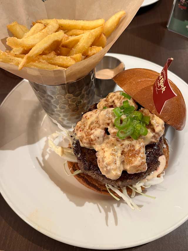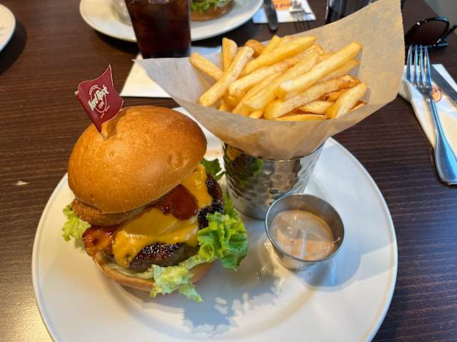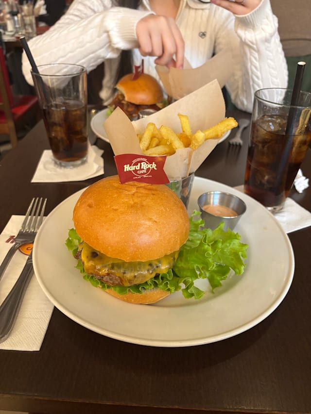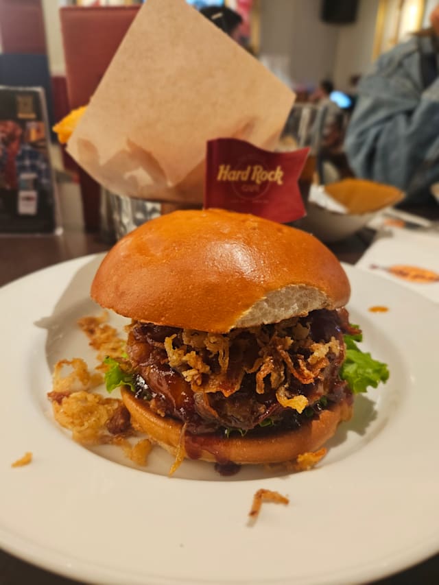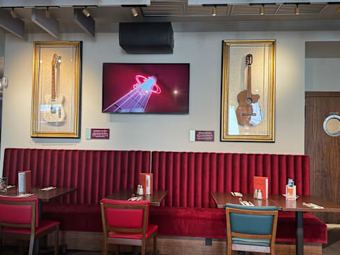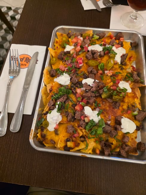 3.5/10From the time I was seated (inside, with about 1/2 the tables empty) it took the surly staff 22 minutes to bring me a menu and silverware.. When the waitress finally arrived, 38 minutes had passed. I ordered the Messi Chicken Sandwich and the Pasta Cavatappi with Formaggio and a Pepsi Zero.. The Pepsi Zero was FLAT, just syrupy with no carbonation at all. The Chicken Sandwich was decent but the pasta was barely edible. I was given a free refill of the flat Pepsi Zero once. Either the staff are just all poorly trained or completely mismanaged.. There were other staff just standing around doing nothing.. The ambience inside SUCKS.. I’ve been to Hard Rock’s all over the world and this one is BY FAR the worst.. It has a great location, just horrible food and worse service. Never again.