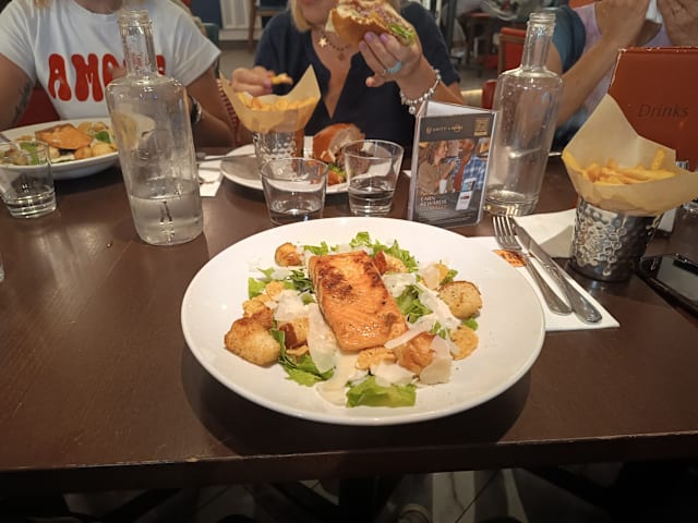 5.5/10Ordered starter and mains deciding to bring both out together which was annoying! The Pepsi was off the waiter was touching while serving us ! No napking on table no straw for drink never a waiter around !