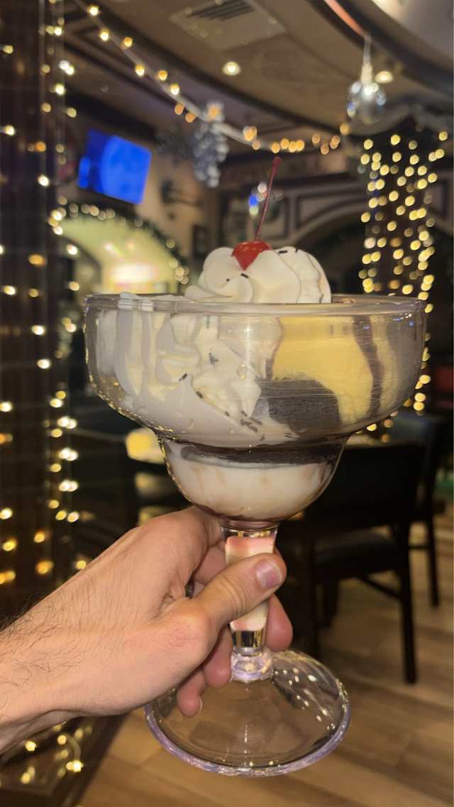 - Warm chocolate brownie | vanilla bean ice cream | hot fudge | chocolate sprinkles whipped cream | cherry