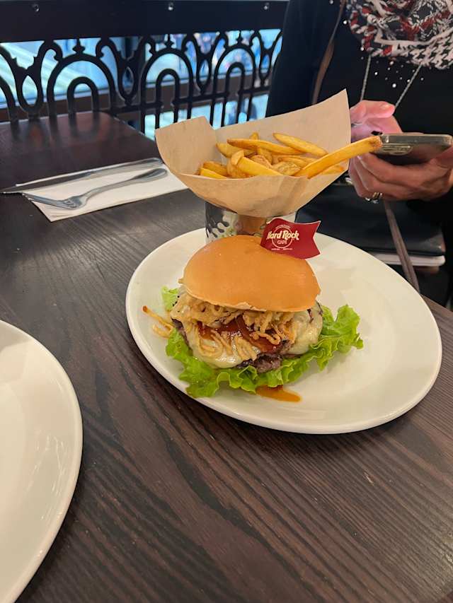 4/10We have visited lots of Hard Rock restaurants around the world & we were very much looking forward to seeing what the Venice location would offer. Unfortunately the outside was the best part of the experience 😕! Once inside it lacked character, memorabilia & ambience. We could have been anywhere. We felt we spent a lot on food & drink, without the added Hard Rock experience 😪 Our advice would be to just look from the outside, which has gondolas parked out front. Sorry Hard Rock, but this branch needs updating & keeping on brand with a Venice theme xx