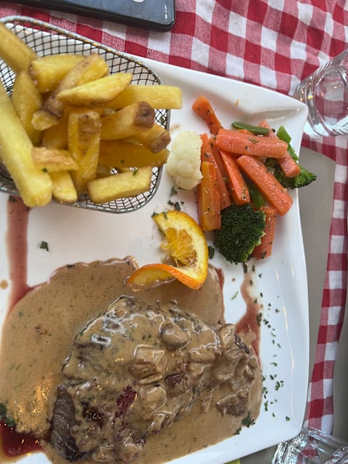 10/10Great service and lovely food. We were a large group of 27 on a school trip. Dispute there being so many of us the service was great, really friendly staff and nothing too much trouble. The food was really nice and huge portions. Not too expensive when compared with a lot of places in Geneva.