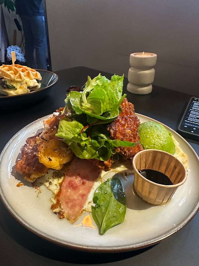 10/10I had a waffle burger, and the sweet-savory sauce paired perfectly with the chicken patty inside. As expected in Brussels, the waffle was soft and delicious. The fries were crispy with a refined flavor — a hint of truffle and a delicate touch of lemon zest made them feel surprisingly elegant.