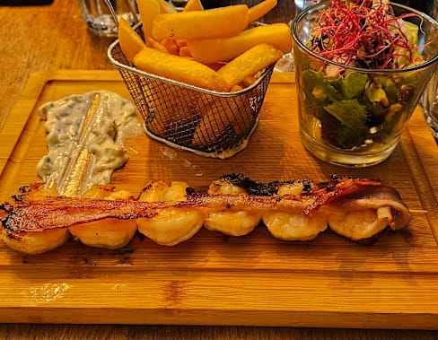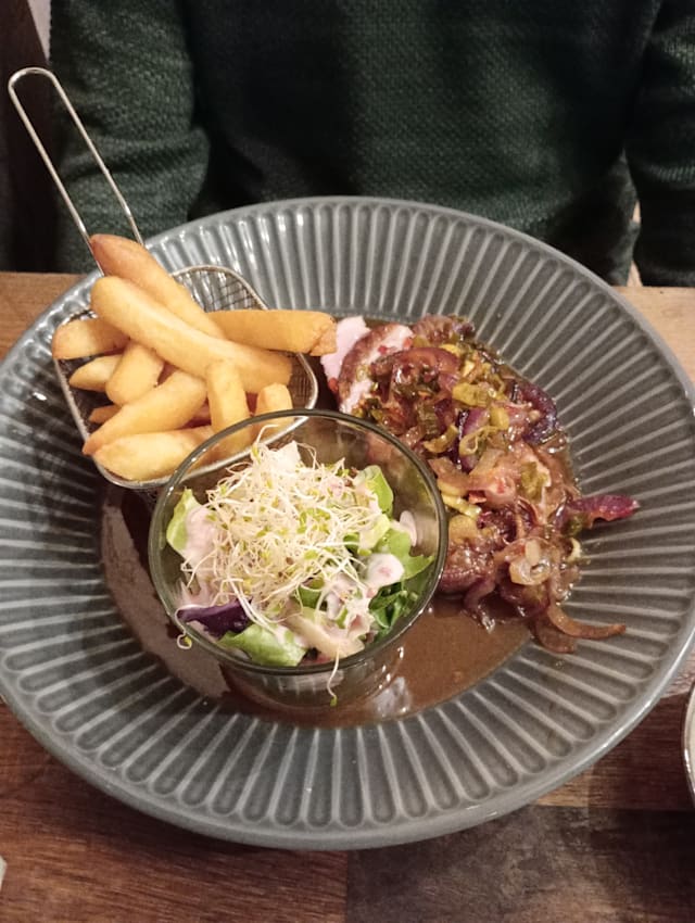 7.5/10Tiny restaurant but worth it. You will eat very tasty meals : all dishes were prepared with high quality, fresh ingredients. Overall, nice atmosphere : the surroundings are a bit noisy but the place feels cosy.