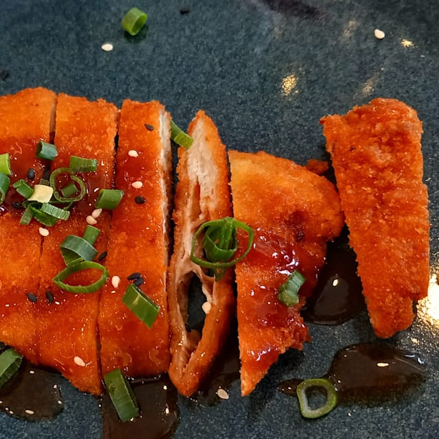3/10The fried Tofu didn't have any seasoning, the sweet chilly sauce wasn't spicy and only tasted like sugar, the ramen stock didn't have enough flavor and ramen noodles had clumps meaning they weren't cooked properly. Additionally, they had a robot to serve the food but they didn't use it. They use a tablet system to order, but overall very slow and although we asked for the everything at once, it came, this being 3 starters, at various times, with a lot of time in between.