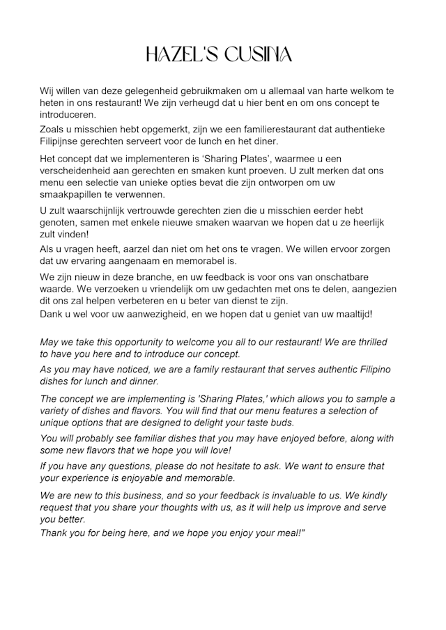 Hazel's Cusina is rated 8.9/10.TheFork users have rated accordingly in the following categories: