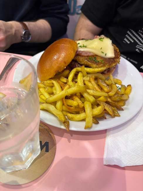 7.5/10Great burger and ambiance, really top! The egg from the French Toast was too cooked.