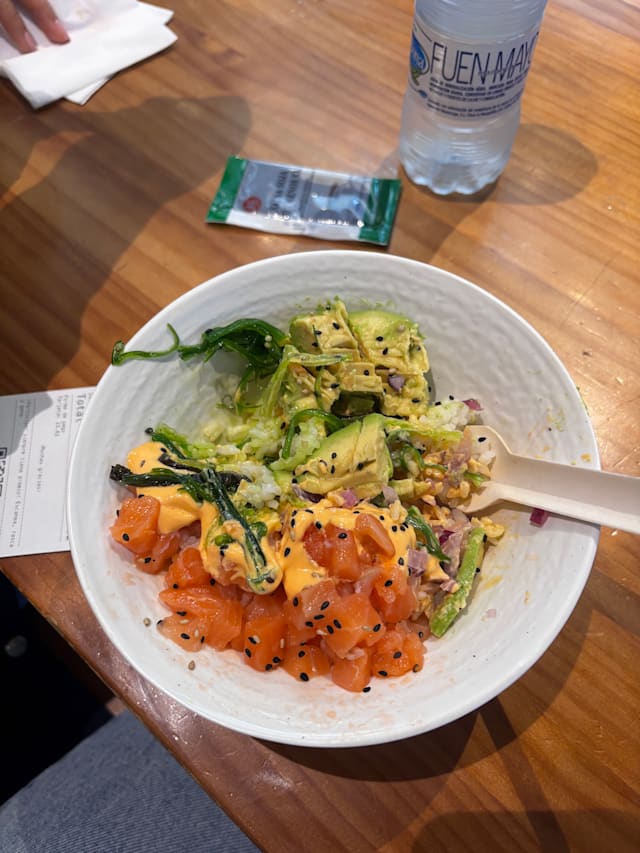 5/10Not enough of the ingredients and sauce in the poke. The matcha latte is too sweet, and they put avena milk without asking before, so better to say it beforehand.