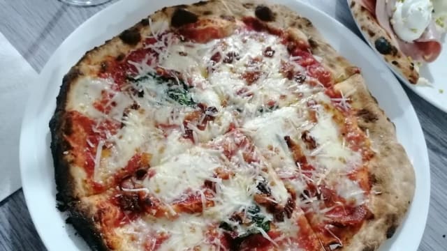 (Fior di latte, provola affumicata, salsicce di prosciutto, friarielli, olio evo)