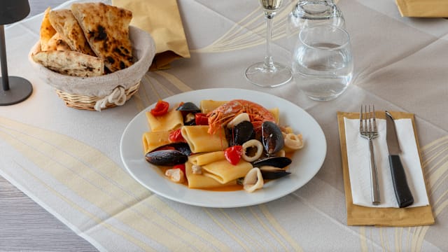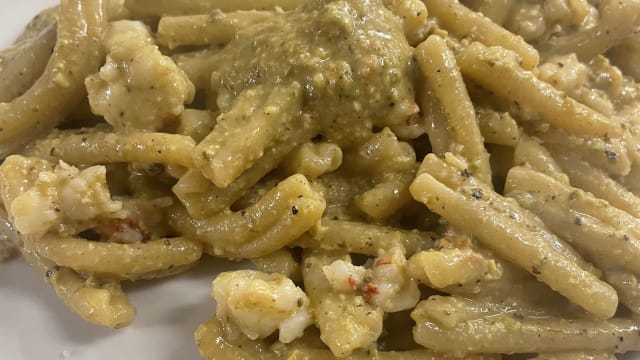 (Pesto di basilico, pomodori confit, granella di pistacchio, olio evo)