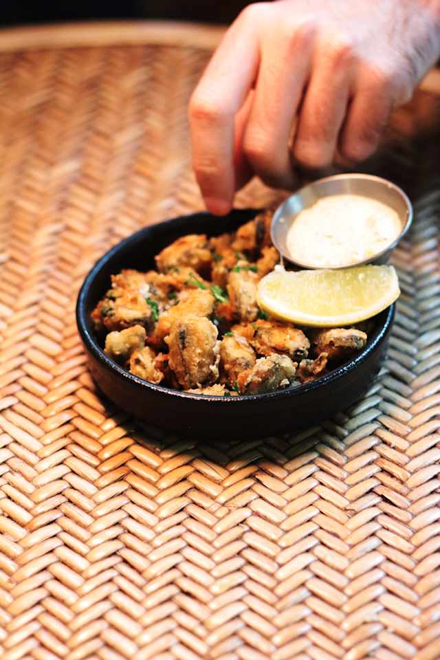- Tempura de moules, sel fumé, sauce tartare maison