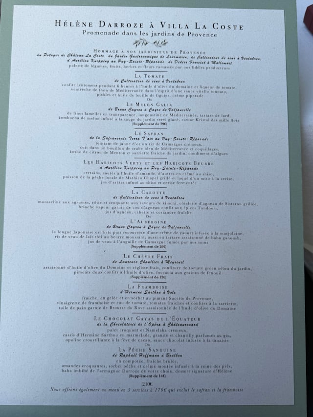 Dear Dan Oshrat, Thank you so much for your compliments. We are so glad you fully enjoyed your experience with us. Hoping to see you again in Provence. Best wishes, Hélène Darroze à Villa La Coste Team