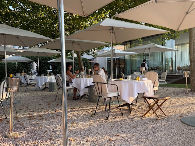 9/10The grounds of chateau Le Coste are unmatched. Absolutely gorgeous. Minimal and serene. Service is impeccable. Helene Darroze is not exception. The space is surrounded in glass and therefore feels like a part of the grounds more than being inside a restaurant. It’s a quiet experience. Not too many tables and people are subdued. We were certainly too boisterous for the environment but no one scolded us. The food is very good - if you like the small multi-course, 3-4 hour experience. We are more comfort food than foodies and therefore 1 star off for the food. Overall wonderful experience.