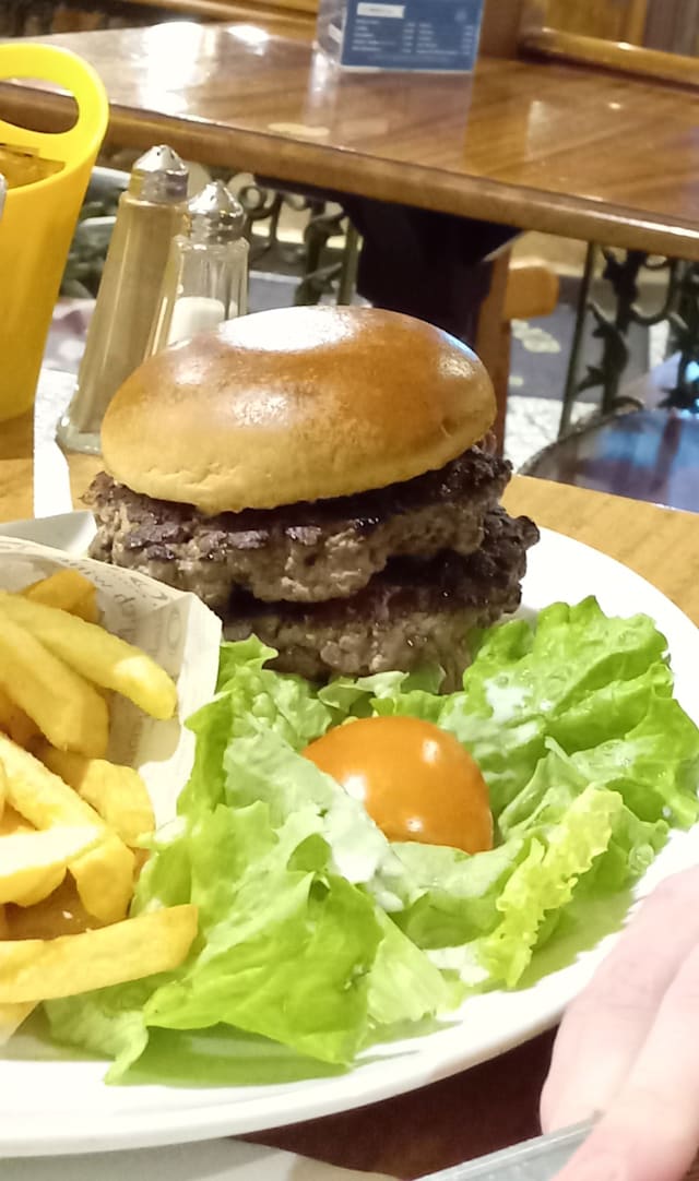 8/10You can go there for the good espresso and their homemade fries. The "Royal Hamburger" is far from being Royal (both in its contents and the flavor of the meat), except maybe for its price, so I would avoid that. Service is extremely friendly and lighthearted. I do appreciate the relaxed and warm ambiance, with its wooden table, decorated windows and carpet (even if it's old).