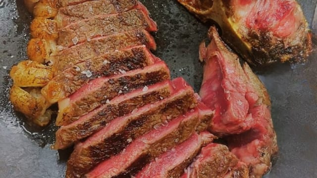 Taglio scenografico e dal sapore intenso, con osso lungo e carne marezzata. Grigliato a regola d’arte per una crosta croccantina fuori e una consistenza morbida all’interno. Perfetto da condividere… o da affrontare da soli.