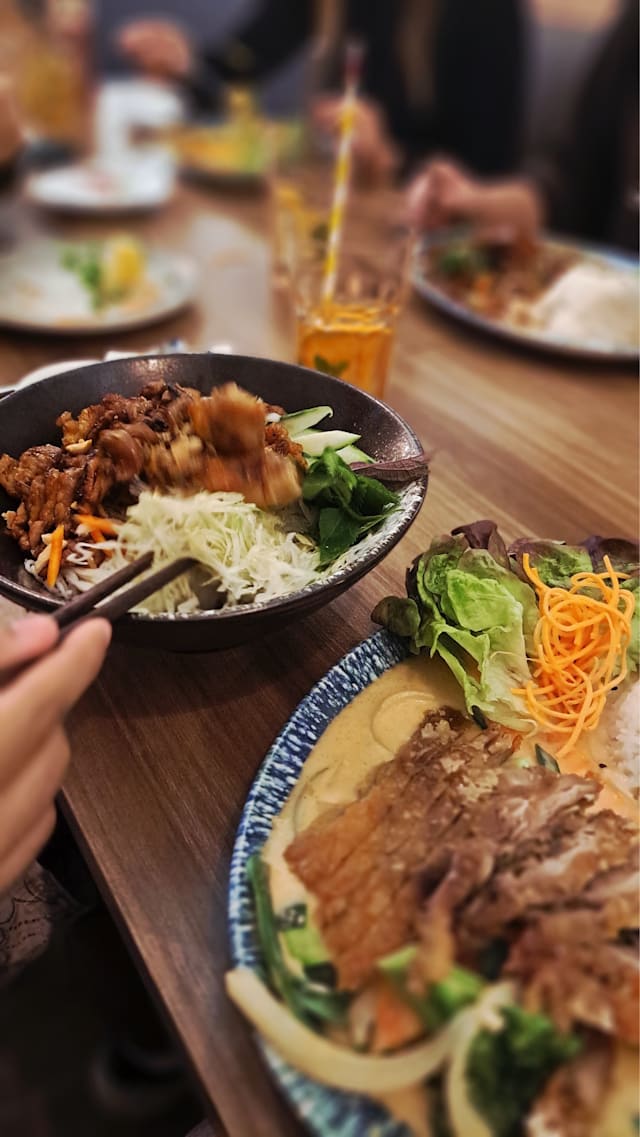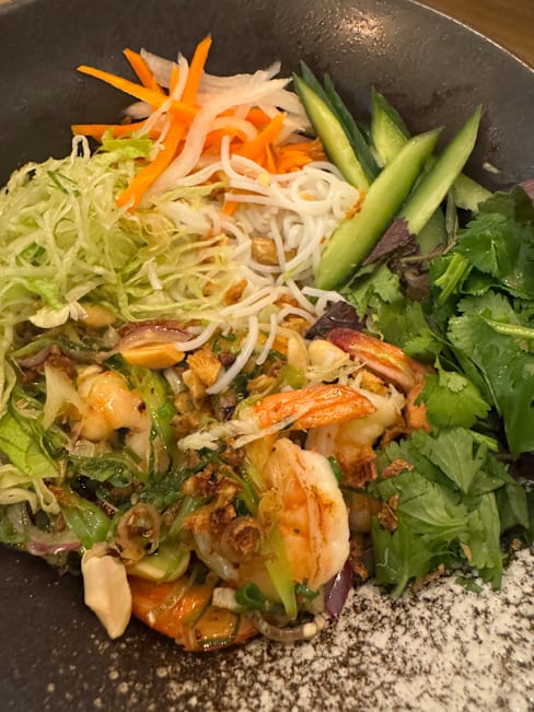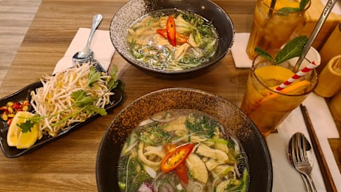 9.5/10Very rarely do I want to eat everything on the menu, but we both felt that it would be very easy here. We shared the mixed starter and my favourite was the spring roll bursting with mint and fresh flavours. I had a chicken curry and my partner had the salmon with tamarind. Both were delicious with a mild background heat. I will be going back to try the pho and possibly the more spicy options. The service was excellent and very welcoming.
