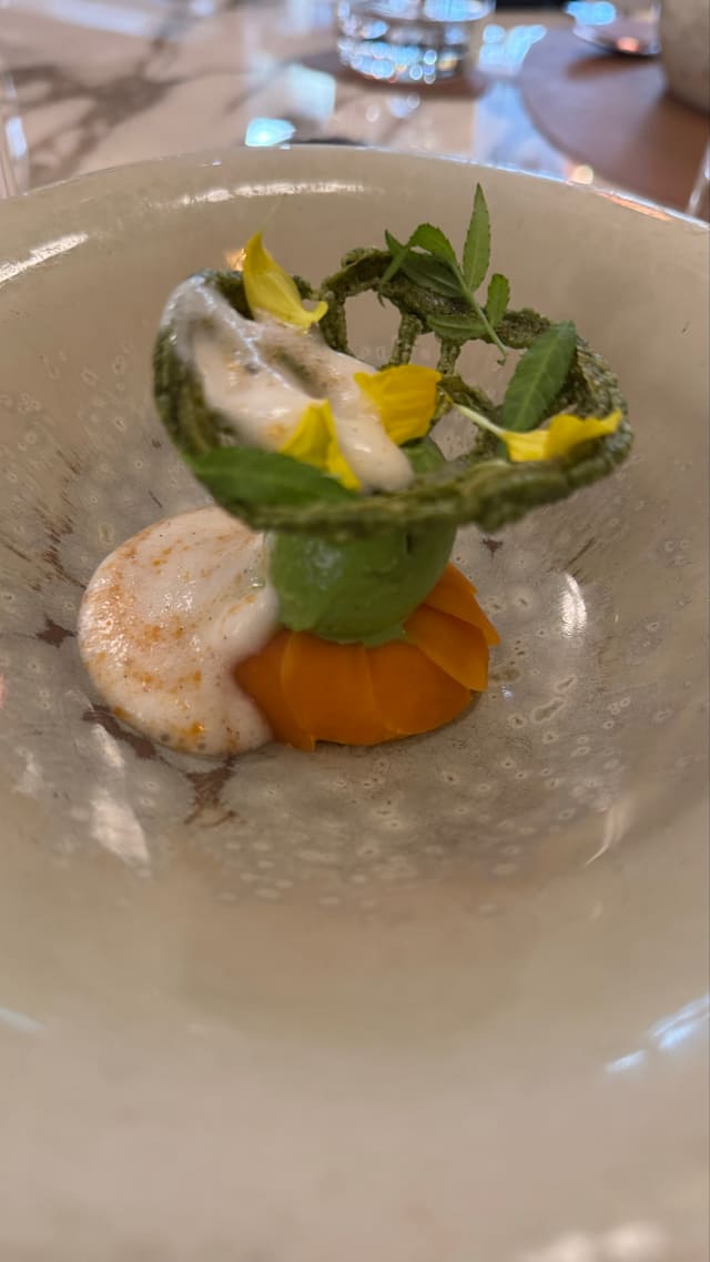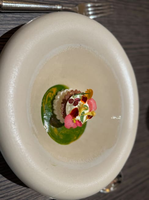 4/10+1Overall the food was too contrived, strange mélanges in an effort to be inventive. The restaurant was busy and service was particularly slow - 3.5h to serve 4 courses (including dessert). Wine pairing was mediocre. Not worth 150 euros per person for meal and pairing. Ambiance too bright.