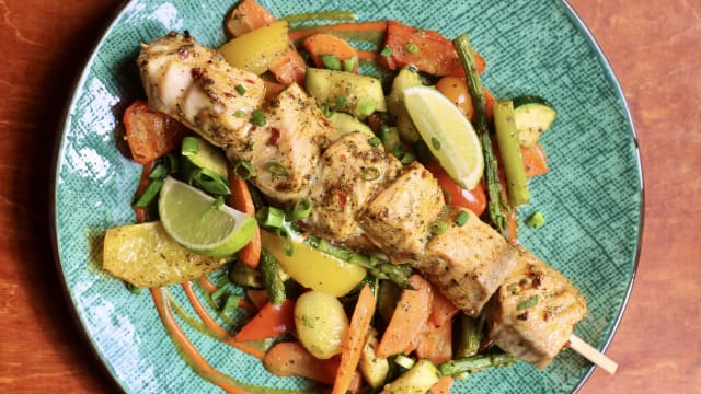 - Wisselende vis. gemarineerd, geserveerd met mojitosaus
