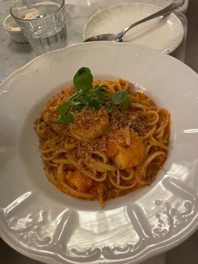 7.5/10I made a reservation, but there were no tables when we arrived and we had to wait (standing by the door) for 25 min. The host did not offer for us to wait at the bar and gave no explanation for why our table was not ready. I ordered risotto which was very good but the service was very slow and it took a long time to get a check.