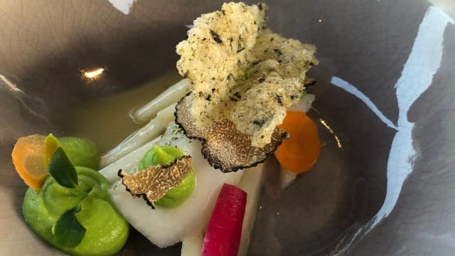 Hanging high in In de Heerlyckheid in Deurne is a chandelier. It symbolises the richness and elegance of this small restaurant. Special flavours, special plating and a special view into the kitchen. The service team is correct and the hostess knows everything about win...