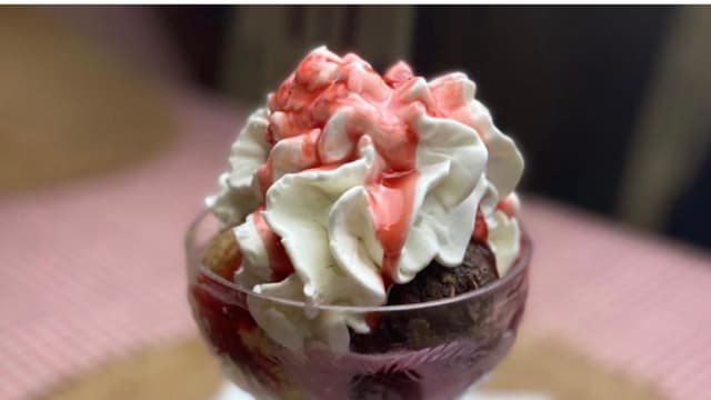 Copa de nata con trufas y sirope