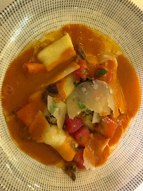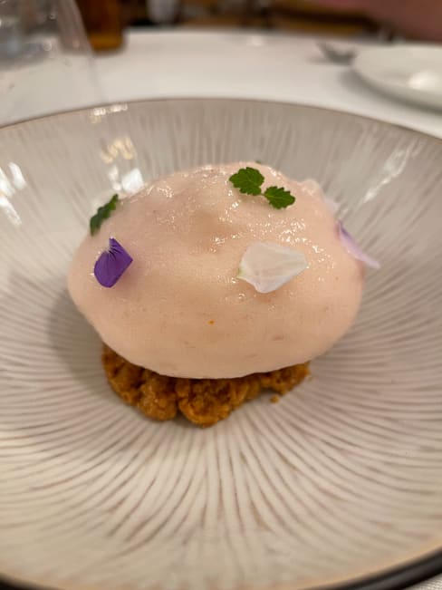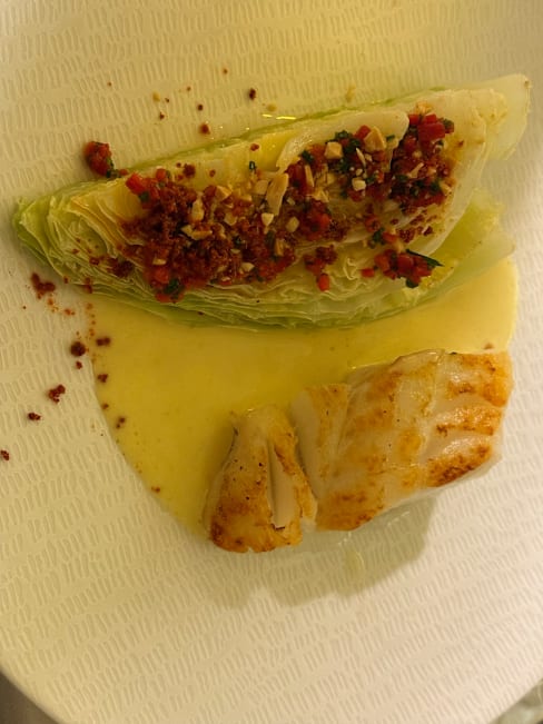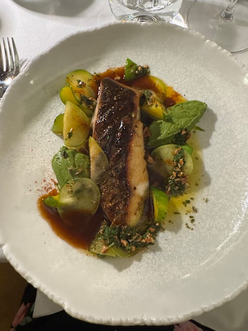 9/10+2We celebrated a friend’s birthday at Hestia while visiting Paris. We sat in the room downstairs which is a very nice and inviting room. The food was beautifully presented and very high quality, light and modern. My gnocchi starter was fluffy and delicious. Three of us had the cod with crunchy cabbage which was excellent. Sean, our server, was very professional and efficient. We will definitely go back,