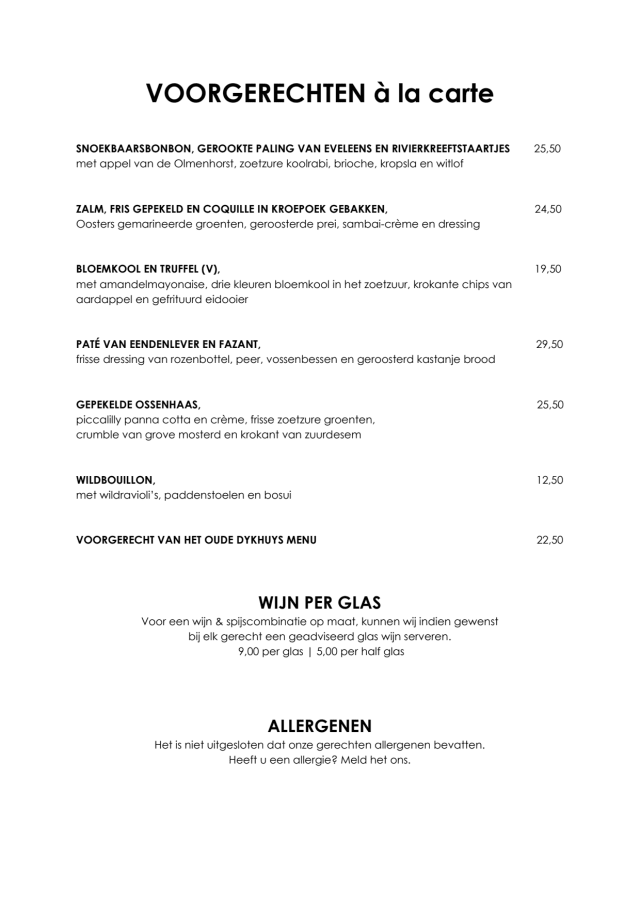 10/10We had a "Het Oude Dykhuys" menu with a wine package. The story behind the wine, the perfect service, the sweet smile and the lovely flavours of every dish, made this dinner one to never forget.