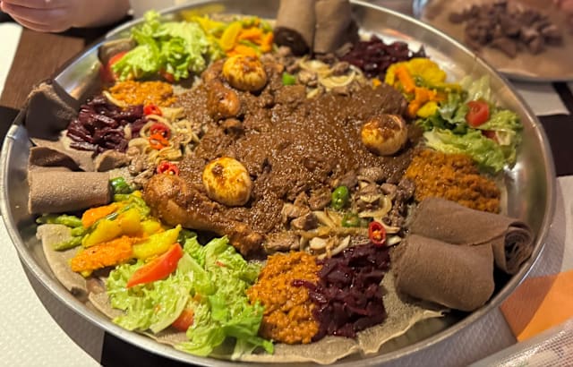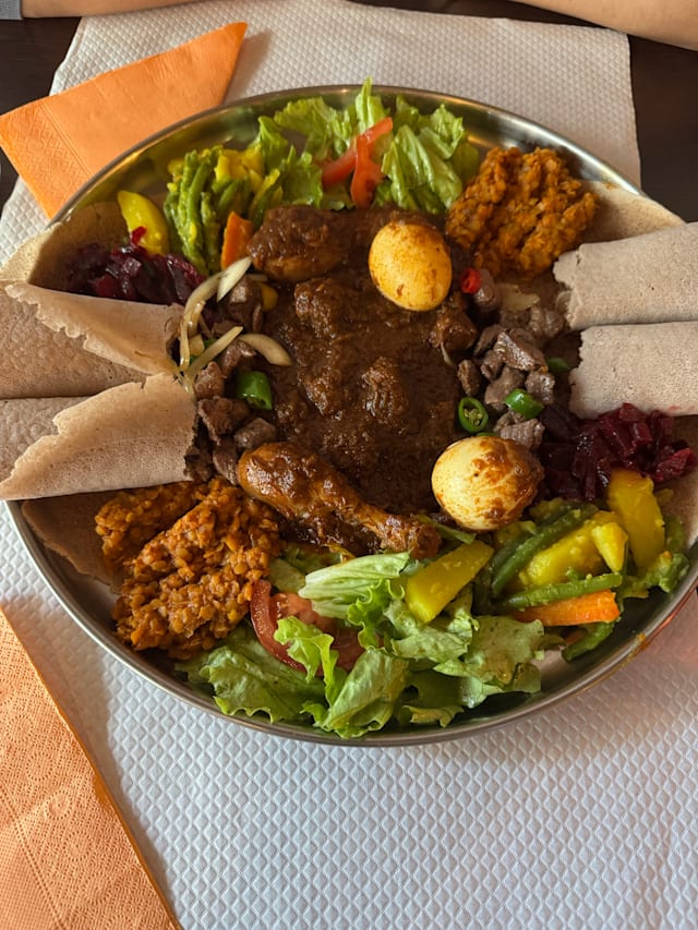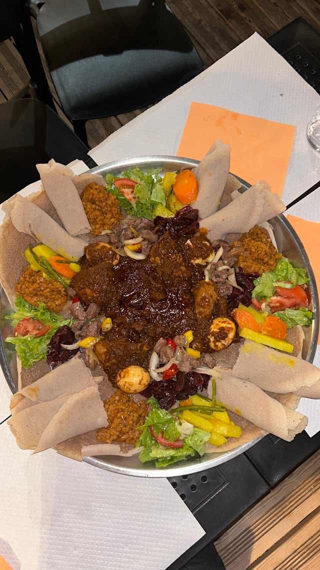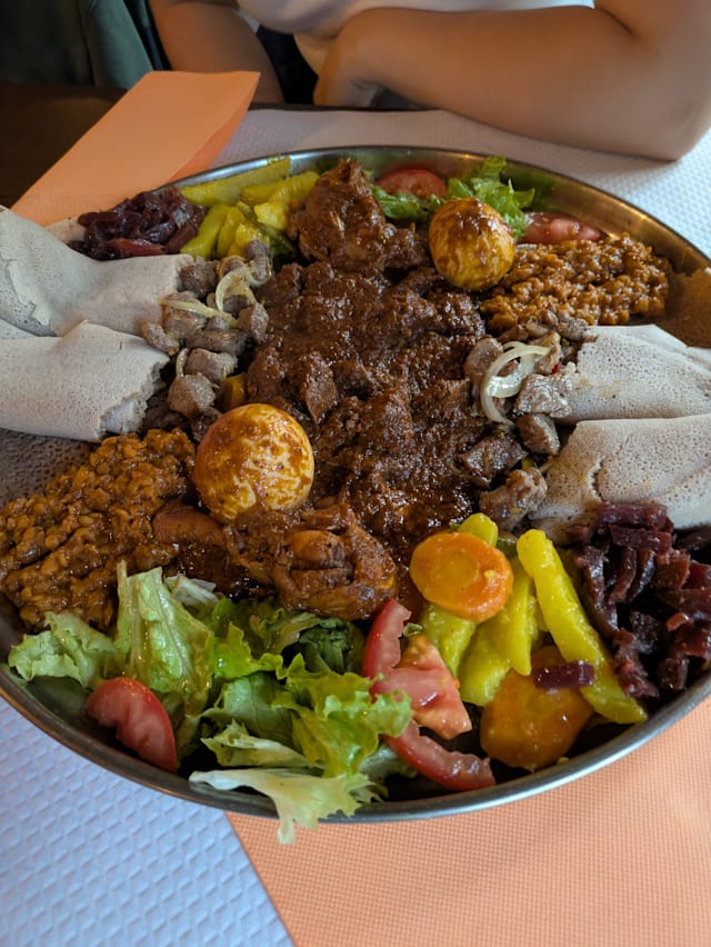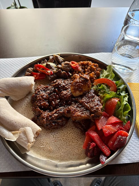 9/10Super gentile! Vert Nice place very welcoming! The owner is kind, patient, accommodating and attentive! Definitely recommend. We tried the mix suggestions vegetarian and meat mix and if you never been to an Eritrean restaurant it’s definitely a nice start to have an idea.