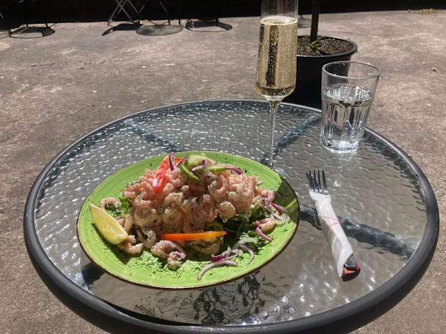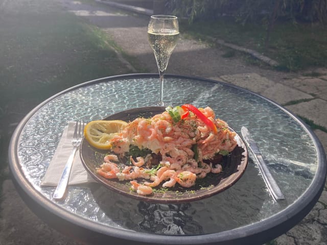 7.5/10A nice atmosphere with all the dogs. I got the salmon and it was ok (but lacking salt), and the service is friendly