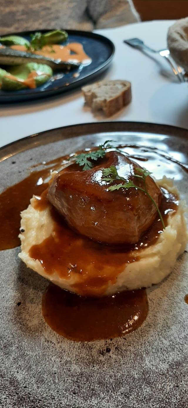 Filet de bœuf, mousseline de cèleri boule et créme aux morilles