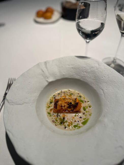 8/10I enjoyed the food and had one of the best vegetarian dishes I’ve had in my entire life with carrots and sweet potato. I will be back again next time I’m in Spain! The service was good over all but I’ve been a kick on getting Michelin lunches on my solo travels and they’ve been so far the least interactive. But it is still better than 99% of places! I highly recommend the food alone is worth the stop.