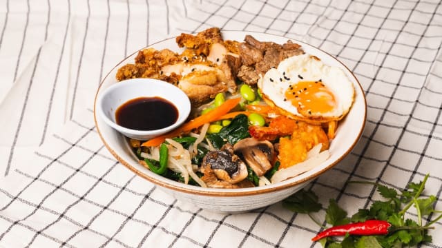 Bibimbap mixte- bœuf, poulet, crevettes
