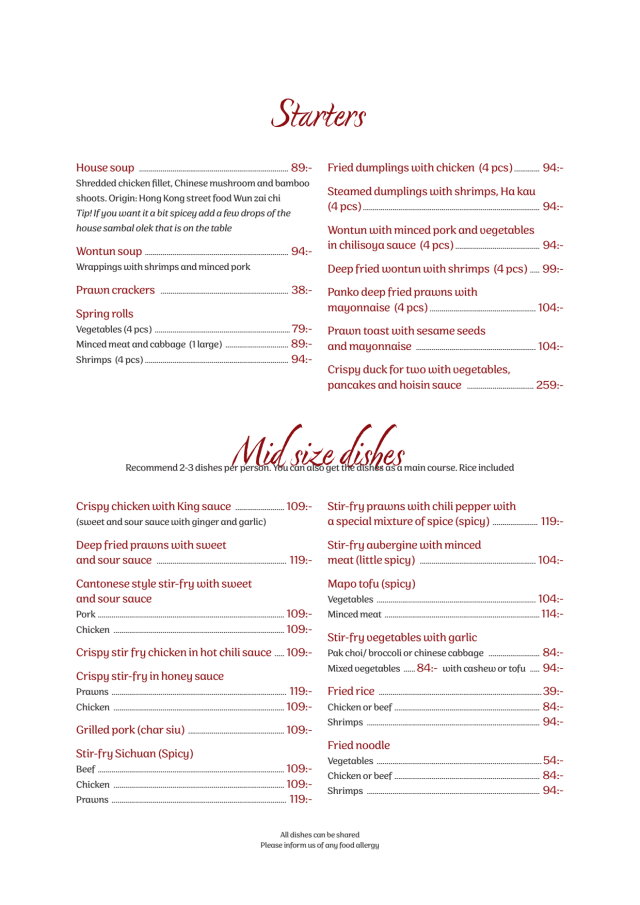 9/10The food here is wonderful. I have’s looked for a good Chinese restaurant in Stockholm and have always had a delicious meal here. Very cosy.