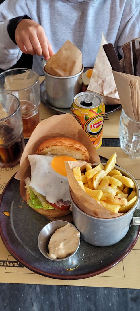 6.5/10As locals, we had been meaning to try this place, which is in a very touristy location. Due to Covid pandemic, it's much quieter than usual, so we took advantage of the 50% off discount. Inside, there were plenty of unruly kids. Service was speedy and friendly, but food was rather "meh". Burgers were tasty but like warm, may tasted of garlic powder rather than fresh, and whole think felt rather like a fast food chain. With so much competition in Belém, I'd hoped for something a bit better presented and less fast food chain.