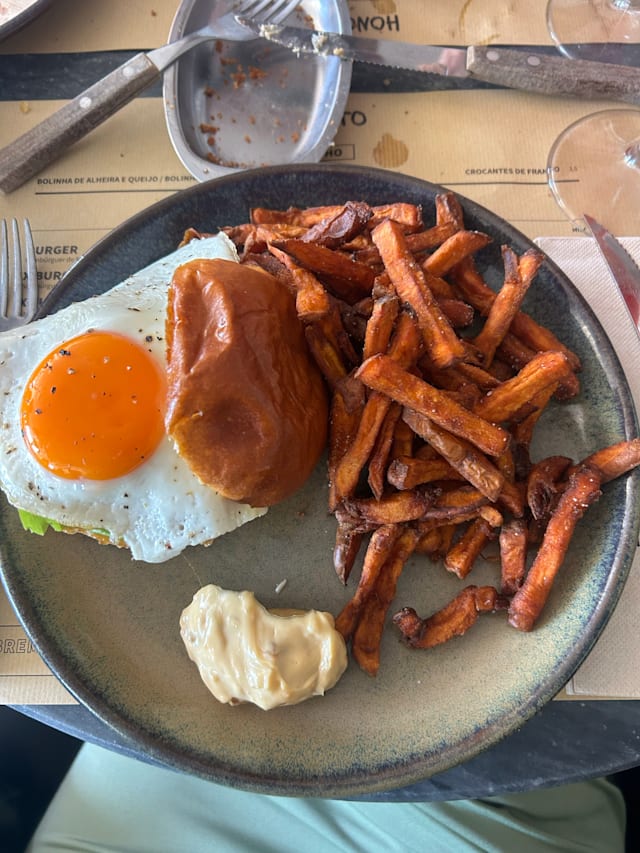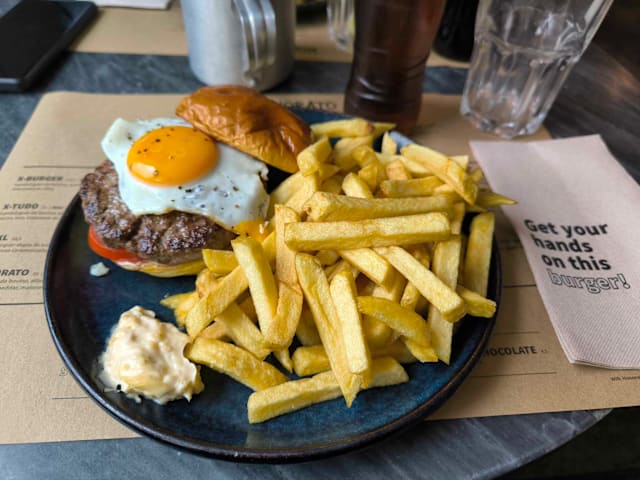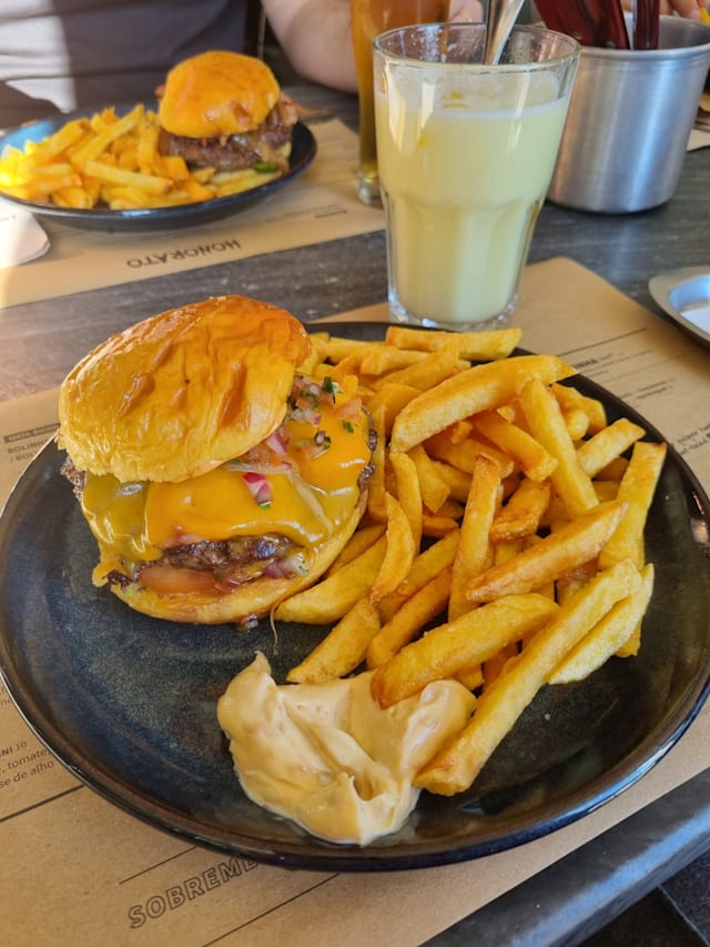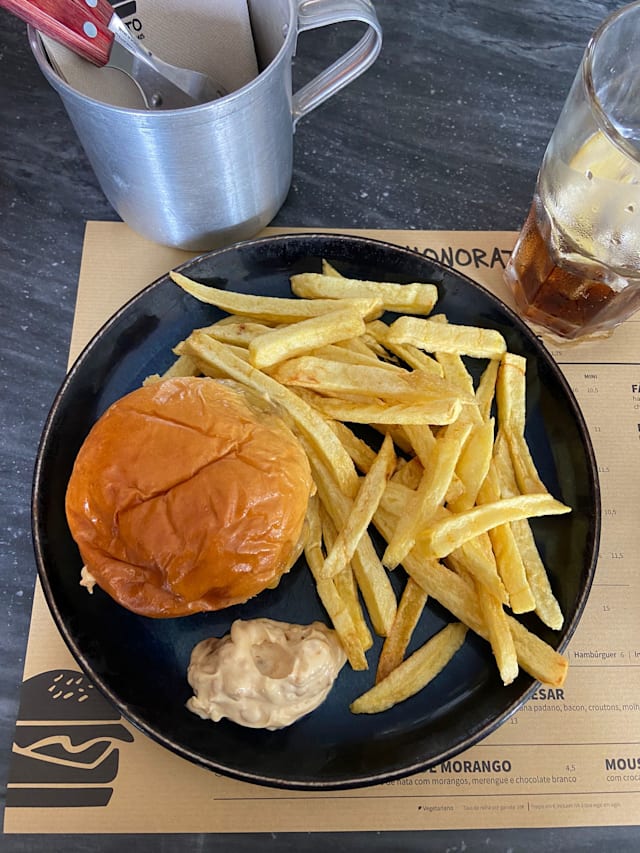 9.5/10Tasty burgers and fries. And when we went, you could get an outside seat in the middle of busy Belem at 17.30.