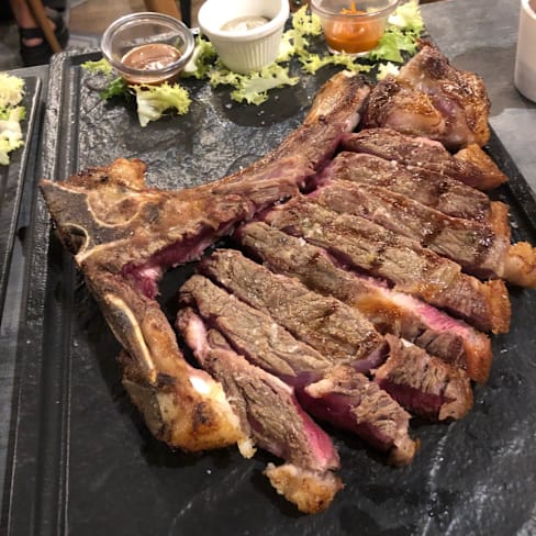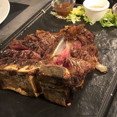 7/10Ordered 2 steaks at 1kg ea for 65euro a piece and only brought 1 cooking stone to the far right side of our 6 person table. That left 1 couple to do the cooking for the table. When we asked for another stone it was too cold and didn’t work. If I wanted to cook for the table I would host and make dinner at home.