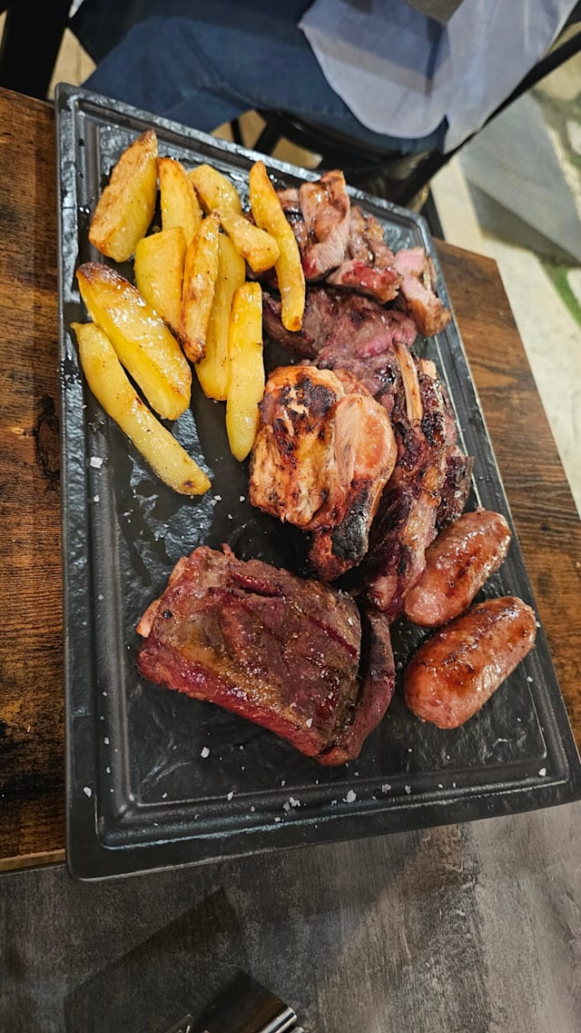 7/10Ordered 2 steaks at 1kg ea for 65euro a piece and only brought 1 cooking stone to the far right side of our 6 person table. That left 1 couple to do the cooking for the table. When we asked for another stone it was too cold and didn’t work. If I wanted to cook for the table I would host and make dinner at home.